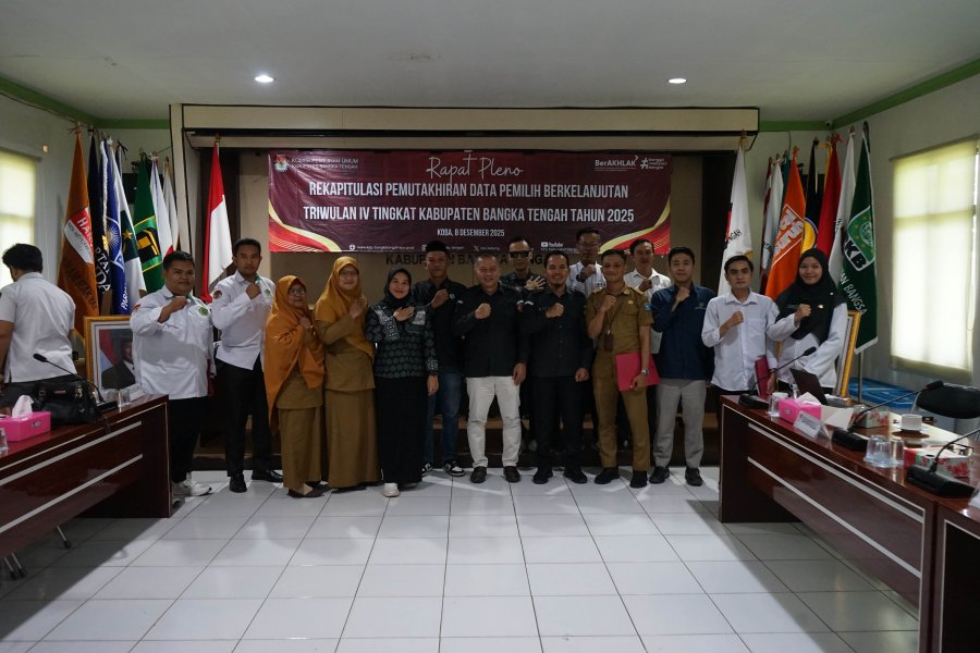 KPU Kabupaten Bangka Tengah menyelenggarakan Rapat Pleno Terbuka Pemutakhiran Data Pemilih Berkelanjutan (PDPB) periode Triwulan IV Tahun 2025 tingkat Kabupaten Bangka Tengah, di ruang rapat KPU Kabupaten Bangka Tengah, Senin (08/12/25). Rapat pleno terbuka dipimpin oleh Ketua KPU Kabupaten Bangka Tengah, Supendi Saputra didampingi Anggota KPU Kabupaten Bangka Tengah Divisi Perencanaan, Data dan Informasi Endah Lestari, Divisi Sosdiklih, Parmas, dan SDM, Sabpri Aryanto, Divisi Teknis Penyelenggara Andriyandi Putra Pratama, beserta jajaran Sekretariat KPU Kabupaten Bangka Tengah. Supendi menjelaskan bahwa Pemutakhiran Data Pemilih Berkelanjutan (PDPB) dilaksanakan secara berjenjang oleh KPU kabupaten/kota tiap 3 bulan oleh KPU Provinsi dan KPU RI tiap 6 bulan sesuai Peraturan KPU Nomor 1 Tahun 2025. "Kami telah melakukan rapat pleno pemutakhiran data pemilih setiap 3 bulan dan ini merupakan pleno terakhir di tahun 2025" ujar Supendi. Anggota KPU Kabupaten Bangka Tengah Divisi Perencanaan, Data dan Informasi Endah Lestari menjelaskan bahwa selama proses pemutakhiran data pemilih pihaknya telah menyusun pemutakhiran data pemilih untuk PDPB TW IV Tahun 2025. “Pada PDPB TW IV Tahun 2025, total pemilih berjumlah 146.926 dengan rincian laki-laki sebanyak 75.419 dan perempuan 71.507” jelas Endah Selanjutnya Supendi membacakan berita acara rekapitulasi data pemilih berkelanjutan Triwulan IV Tahun 2025 dari 6 Kecamatan se-Kabupaten Bangka Tengah. “Rekapitulasi Daftar Pemilih Berkelanjutan triwulan IV Tahun 2025 berjumlah 146.926 dengan rincian laki-laki sebanyak 75.419 dan perempuan 71.507. Daftar Perubahan secara keseluruhan pemilih baru berjumlah 2.577, pemilih tidak memenuhi syarat berjumlah 1.245 dan perbaikan data pemilih berjumlah 1.119," kata Supendi membacakan berita acara. Anggota Badan Pengawas Pemilu (Bawaslu) Kabupaten Bangka Tengah, Muhammad Tamimi memberikan tanggapan penambahan pemilih dari setiap triwulan mencapai seribuan pemilih. Kemudian Endah Lestari menjelaskan bahwa adanya pemilih masuk dari data Kemendagri dan juga pemilih pemula dari Dinas Pendidikan, dan juga Kementerian Agama. "Kami senantiasa berkoordinasi dengan pihak terkait penambahan pemilih baru yang merupakan pemilih dari siswa yang berusia 17 tahun" tambah Endah Kegiatan berlanjut dengan penandatanganan berita acara dan penyerahan kepada peserta undangan rapat pleno. Hadir dalam rapat pleno, Bawaslu, Badan Pusat Statistik (BPS), Kementerian Agama, perwakilan dari Kapolres, Kodim 0413/BKA, Dinas Sosial, Pemberdayaan Masyarakat dan Desa, Dinas Pendidikan Kabupaten Bangka Tengah. (c2p). ....