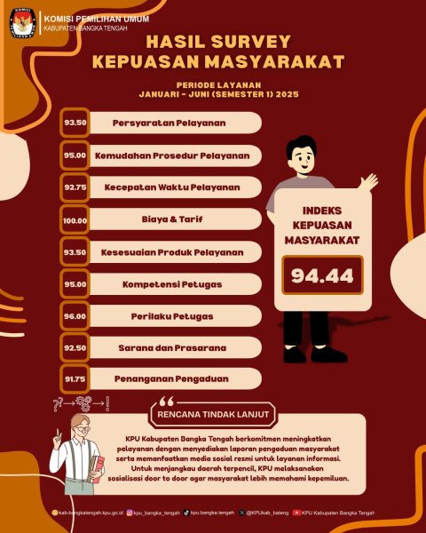 Hasil Survey Layanan Kepuasan Masyarakat Periode (Januari -Juni 2025) di KPU Kabupaten Bangka Tengah