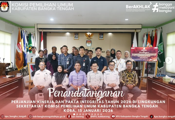Penandatanganan Pakta Intergritas, Perjanjian Kinerja, RKT KPU Kabupaten Bangka Tengah Tahun 2026.