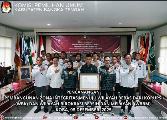 Senin 08 Desember 2025 KPU Kabupaten Bangka Tengah melaksanakan kegiatan Pencanangan Pembangunan Zona Integritas Menuju Wilayah Bebas dari Korupsi (WBK) dan Wilayah Birokrasi Bersih dan Melayani (WBBM).