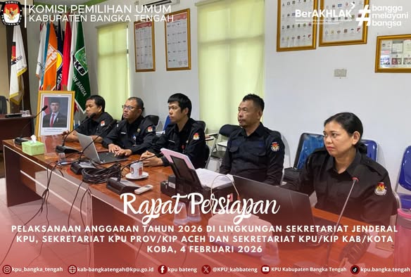 Koba, KPU Kabupaten Bangka Tengah meghadiri kegiatan Rapat Persiapan Pelaksanaan Anggaran Tahun 2026 di Lingkungan Sekretariat Jenderal KPU, Sekretariat KPU Prov/KIP Aceh dan Sekretariat KPU/KIP KAB/KOTA secara daring. Rabu, 04/02/2026