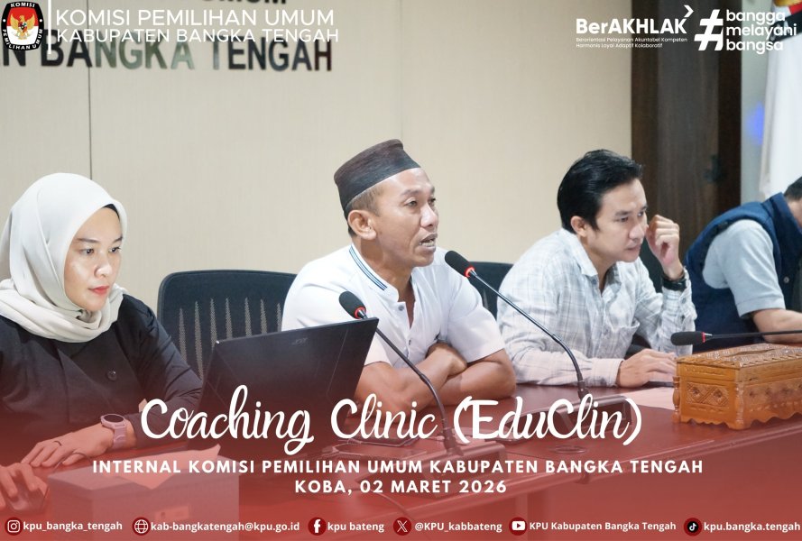 Koba, Komisi Pemilihan Umum Kabupaten Bangka Tengah gelar kegiatan Coaching Clinic Atau Eduklin (Edukasi Klinik) Untuk internal jajaran KPU Bangka Tengah, senin (02/03/2026). Kegiatan ini bagian langkah KPU Bangka Tengah dalam penguatan SDM yang ada dilingkungan KPU.