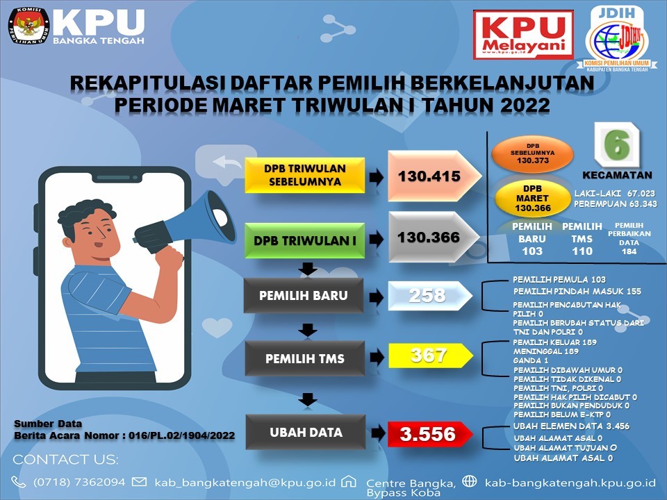 Repost from babel.kpu.go.id-Komisi Pemilihan Umum Provinsi Kepulauan Bangka Belitung menerima kunjungan kerja Komisi I DPRD Kabupaten Bangka Tengah, Jumat 8 April 2022, di ruang rapat Sekretariat KPU Babel. Rombongan Komisi I DPRD Kabupaten Bangka Tengah ini terdiri dari 4 orang yaitu Ketua Komisi I H.Pahlivi Syahrun, Anggota Hj.Wahidah berserta Herman Safari dan Yuli Ariani selaku pendamping. Ketua Komisi I DPRD Kabupaten Bangka Tengah, mengemukakan tujuannya ke KPU Babel adalah untuk berkoordinasi dan sharing pendapat terkait Daerah Pemilihan di Kabupaten Bangka Tengah. Ketua KPU Babel menyambut baik atas kunjungan kerja DPRD Kabupaten Bangka Tengah, ia juga menyampaikan “Saat ini belum masuk tahapannya. Tapi apa yang berkembang di publik soal dapil, saya menyambut baik. Itu bagian dari diskursus, dialektika. Ya bagus, dalam konteks partisipasi publik dan dapil memang menjadi isu seksi dan strategis dalam salah satu tahapan pemilu. Karena (dapil) ini ibaratnya medan perang baik bagi partai politik maupun calon,” papar Davitri Husin, Anggota KPU Babel Divisi Teknis menjelaskan, dalam penyusunan dapil KPU selalu berpegang pada regulasi yang ada. setiap tahapan pemilu selalu berpedoman pada UU No 7 tahun 2017 termasuk tahapan penyusunan dapil. Kemudian juga ada PKPU No 16 tahun 2017 tentang penataan dapil dan alokasi kursi. Deni, Anggota KPU Babel Divisi Hukum Pengawasan menambahkan bahwa Dalam UU No 7 tahun 2017 di pasal 185, lanjutnya dijelaskan 7 prinsip dalam penyusunan dapil yaitu kesetaraan nilai suara, ketaatan pada sistem proporsionalitas, proporsionalitas, integralitas wilayah, berada dalam cakupan wilayah yang sama, kohesivitas dan berkesinambungan. Pada masalah Daftar Pemilih Tetap (DPT) apakah berpengaruh pada jumlah kursi atau tidak, Guid Cardi Selaku Divisi Perencanaan dan Data menjelaskan "Bisa tetap, bisa bertambah, bisa juga berkurang. Tapi yang perlu ditegaskan di sini, kami sebagai penyelanggara dalam melaksanakan setiap tahapan pemilu selalu berpedoman pada UU No 7 tahun 2017 termasuk tahapan penyusunan dapil. Kemudian juga ada PKPU No 16 tahun 2017 tentang penataan dapil dan alokasi kursi. Ya kita ikuti aturan itu. Jadi ya tunggu saja,” ungkap Guid. KPU kabupaten/kota juga akan melakukan uji publik sebelum dapil ditetapkan untuk menerima tanggapan dan masukan dari masyarakat dan stakeholder terkait. Sehingga seluruh stakeholder terkait dilibatkan dalam proses penyusunan dapil tersebut. #KPUBabel #KPUMelayani