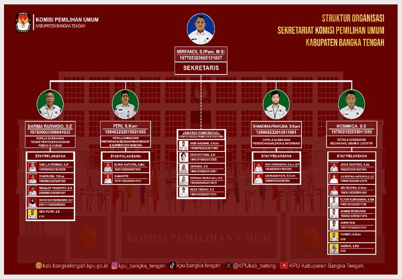 STRUKTUR ORGANISASI KPU KABUPATEN BANGKA TENGAH Struktur Organisasi KPU Kabupaten Bangka Tengah download| Struktur Organisasi Sekretariat KPU Kabupaten Bangka Tengah download Bagikan : Dilihat 37 Kali.